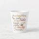 This small size latte mug is shown with a festive Thanksgiving messages print.