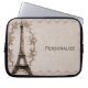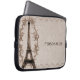 Protect your laptop while you're on the go with this alluring sleeve design featuring the Eiffel Tower against a grunge swirl and postage stamp background in latte brown. Customizable text allows you to alter fonts, change text colors and sizes as you wish. Personalize for yourself or makes a great gift.