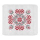 In Latvian folklore, Auseklis-Morning sun or star symbolises light prevailing in the fight over dark. This symbol protects and opposes negative energy. The motif is in traditional Latvian colours, red and linen grey.