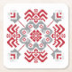 Latvian Auseklis Folk art geometric medallion Square Paper Coaster