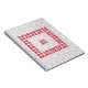 It's a bit smaller than your standard legal sized notebook, but is perfect for fitting into your bag/purse. Great quality in the spiral binding and thicker than average notebook paper. Printing turned out exactly as shown in the customization process - very happy with this purchase.