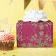 red wrapping paper with a snowflake design. Sun (saulite) design element is from the Latvian traditional sun design used in jewellery, needlepoint, embroidery and decorations in the culture. This has been adapted, to a wrapping paper motif for Christmas.