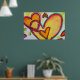 Peach and orange hearts connect like blowing bubbles drift together. A green outline traces each heart. Pale yellow colour dots are like confetti between the hearts. The watercolor painting has a light layer of gold and pink on top. Laugh hearts are a detail from Inspirational Word "Laugh" painting. This poster is great for many occasions, such as, weddings, engagements, birth announcements, save the date cards, shower invitations, Valentine's Day and more! Customise the poster print by adding your own text to it. Proceeds from the sale of this invitation support DonnaBellas Angels, a 501(c)3 non-profit.