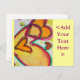 Peach and orange hearts connect like blowing bubbles drift together. A green outline traces each heart. Pale yellow colour dots are like confetti between the hearts. The watercolor painting has a light layer of gold and pink on top. Personalise this postcard with your own text and images.