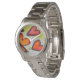 Peach, pink, and orange hearts fly across the painting like loose fall leaves caught in a breeze. A green outline traces each heart. Pale yellow colour dots are like confetti between the hearts. The watercolor painting has a light layer of gold and pink on top. Laugh hearts are a detail from Inspirational Word "Laugh" painting. Make customised love heart watch designs with your personal messages and/or photos. Use the "customise it" button. The hearts art makes great personalised custom wrist watch gifts!