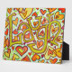 The word "Laugh" is painted in a bright, happy yellow against a speckled lime green background. A orange, red, and pink hearts dance through the painting like the rise of fall of laughter. Personalise this art painting with your own text or images using the "Customise It" option. It makes for a great patient or caregiver support gift!