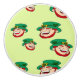 A delightful pattern featuring jovial depictions of laughing leprechauns adorning a light green background, evoking a whimsical and festive atmosphere associated with Irish folklore and merriment. The playful arrangement of the cheerful leprechaun motifs against the soft green backdrop creates a vibrant and inviting design.