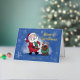 This Christmas card is a version of a similar design of mine, but this card has the fancy addition of foil letters on the front and the ability to personalize the card with your name making it extra special. On the front is my own illustration of Santa Claus laughing while he is looking at a chocolate Lab wearing reindeer antlers and a holiday wreath around its neck. The text in the top-right is done in foil and reads, "Merry Christmas," in fancy, modern script. Underneath the illustration, is a spot for you to type in your name(s). These letters are also done in foil. The inside of the card reads, "Wishing you joy and laughter," which this card is sure to do for whomever receives it. This is a simple yet striking, fun and fancy, card design.