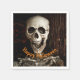 Fun Halloween paper party napkins feature slightly creepy, kinda funny photo of laughing skeleton with customisable text