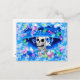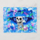 Laughing Skeleton Woman in Blue Bonnet on Blue Postcard