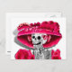 Laughing Skeleton Woman in Red Bonnet Postcard