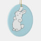 Laughing white bunny on blue ceramic tree decoration