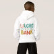 A fun and eye-catching t-shirt design featuring the phrase "Laughs in the Bank" in a vibrant, multicolored font. Each letter bursts with a different bright colour, perfect for those who want to express their financial success with a touch of playfulness.