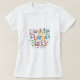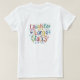 The t-shirt features the phrase "Laughter in Large Stacks" in a playful, multicolored font. The colours could be a vibrant rainbow gradient or a more scattered, confetti-like pattern. This design is perfect for someone who loves to laugh and have fun!