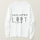 Write a short description of the t-shirt design for the image of "Laughter Loot Luxe."