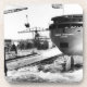 Launching of the Edmund Fitzgerald 6-8-1958. SS Edmund Fitzgerald (nicknamed "Mighty Fitz," "The Fitz," or "The Big Fitz") was an American Great Lakes freighter launched on June 8, 1958. Over 15,000 people attended the Fitzgerald's launch. The event was troublesome. When Mrs. Edmund Fitzgerald christened the boat by smashing a champagne bottle over the bow, it took her three swings to break the bottle. The launch was delayed 36 minutes while the shipyard crew struggled to release the keel blocks. Upon launching sideways into the water, the boat crashed violently into a dock.Although she had reported having some difficulties during a gale on Lake Superior, the Fitzgerald sank suddenly on November 10, 1975 in 530 feet of water without sending any distress signals. The precise cause of her sinking remains a mystery. All 29 on board were lost.