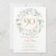 A decorative laurel garland encircles a faux gold foil border containing 90 years age text. Below your birthday event details are set in classic elegant text. The reverse features monogram initials set within a matching floral and faux gold foil garland. Designed by Thisisnotme©