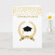 Graduation card with laurel and gold metallic look confetti on white background. Ideal for Graduations. Text can be personalised!