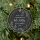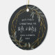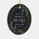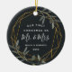 Celebrate your first Christmas as an engaged couple with this charming and festive ornament. Round design features "our first Christmas as Mr. & Mrs." (or your choice of titles) in modern block and script lettering, surrounded by a faux gold foil border accented with green winter leaves. Personalise with your names and the year, and add a wedding photo to the back with a matching golden geometric frame.