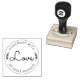 Simple and modern rubber stamp with circular text, script and laurel leave decoration.