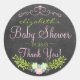 This pretty, chic country look baby shower, thank you sticker shows a pink, country blue and green floral, laurel flourish, on a chalkboard look background- with the mother-to-be name, baby shower date and thank you. A pretty pink swirl embellishment tops this popular Country theme, baby shower guest favour tag. Perfect if you are expecting a girl. Use this beautiful baby shower thank you sticker, for an afternoon tea or bridal shower! (Click Customise It). To see more wonderful products- Please visit my store "The Hungarican Princess" at www.zazzle.com/hungaricanprincess*. Look in my "Oh Baby" department category. Congratulations! TIP: PRODUCT SAMPLE IS SHOWN ON A MATTE FINISH- A GLOSSY FINISH IS AVAILABLE-YOU CHOOSE!