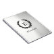 Black laurel wreath with monogram in the middle. The background is a gradation of white and grey