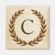 A delicate laurel wreath is layered over a parchment paper background in the classic Roman style. This design is personalised with the monogram "C" in a rich sienna tone.