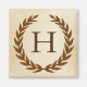 A delicate laurel wreath is layered over a parchment paper background in the classic Roman style. This design is personalised with the monogram "H" in a rich sienna tone.