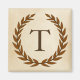 A delicate laurel wreath is layered over a parchment paper background in the classic Roman style. This design is personalised with the monogram "T" in a rich sienna tone.