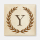 A delicate laurel wreath is layered over a parchment paper background in the classic Roman style. This design is personalized with the monogram "Y" in a rich sienna tone.