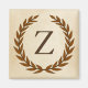 A delicate laurel wreath is layered over a parchment paper background in the classic Roman style. This design is personalized with the monogram "Z" in a rich sienna tone.