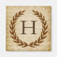 A delicate laurel wreath is layered over a vintage sheet music background in the classic Roman style. This design is personalized with the monogram "H" in a rich sienna tone.