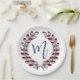 Laurel Wreath Red, White and Blue Stars and Stripes Pattern Monogram M Patriotic Party 4th of July Party or Your Event, Elegant Monogrammed Paper Plates