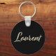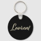 Ein sehr schöner edler personalisierter Button Schlüsselanhänger im whitegold Lettering Look auf schwarz für Laurent.