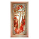 L'Automne by Alphonse Mucha celebrates Autumn with a lavish presentation of a young lady in an elaborate dress standing in front of an Art Nouveau styled chair carrying a basket of fruit.