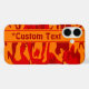 Camouflage smartphone case in red and orange with editable text field. Personalise on the product page with any string of letters, numerals or text symbols.