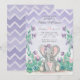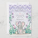 Lavender Adorable Elephant Girl Baby Shower Stripe Invitation