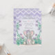Adorable, hand painted girl baby shower invitation design features a cute baby elephant with a lavender bow, sitting in a garden with purple sweet peas and pink stock flowers with a chevron striped background in lavender and white. A complete set is available to match. Copyright, Audrey Jeanne Roberts. Collection: Baby Girl | Adorable Elephant Chevron.