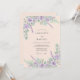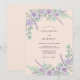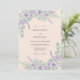 This watercolor design showcases a romantic blend of purple roses and sprigs of lavender. Delicate sage green ferns and leafy accents form a soft arrangement against a warm peach backdrop. The airy botanical aesthetic creates a serene mood suitable for a countryside or seasonal outdoor ceremony.