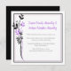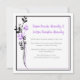 This reception-only wedding invitation features a modern, minimalist design with soft romantic accents. A clean white background is framed by a subtle double border in lavender and black, while a graceful botanical illustration rises along one side with slender black stems and delicate lavender leaves. Elegant script typography is paired with classic serif text, creating a refined and easy-to-read layout. The overall palette of lavender, black, and white feels polished and contemporary, making this invitation ideal for a stylish, reception-focused celebration. Personalize with your own information.