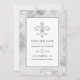 Wedding save the date card featuring a silver fleur de lis emblem emblazoned with a diamond and a vintage floral reverse.