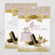 Lavender and gold Quinceanera invitations with pretty lavender and gold cake with diamond numbers, gold glitter high heel shoes and elegant diamond and gold tiara on a lavender and gold background. You can easily customise these beautiful purple and gold princess Quinceanera invitations for your event by simply adding your details in the font style and wording of your choice. This is a printed design with no real glitter, diamonds, bows, etc.