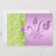 This lavender purple and bright green floral wedding invitation has a PRINTED ON ribbon and bow with a PRINTED ON gemstone and diamond jewel brooch on it, along with a FAUX embossed LOOK floral pattern background. The text is all customisable and so is the paper choice. If you require any other items in this design style, please email niteowlstudio@gmail.com to request them. Existing matching items are shown below.