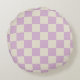 Lavender and Off White Chequerboard Round Cushion