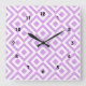 Lavender and White Meander Square Wall Clock