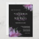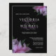 Abstract violet orchid purple flowers with wispy leaves and whimsical swirls border this beautiful wedding invitation set. Perfect for black-tie and candlelight weddings in any season -- simply change the background colour for spring, summer, autumn, fall, and winter. Elegant semi-formal vintage typography is sure to please the traditional bride, but a splash of trendy styling makes it contemporary enough for modern couples. Simple but stylish elegance at bargain discounts and affordable prices for frugal brides on a budget. Shown on Linen paper stock -- click on panel to see less expensive Basic option, or upgrade to premium quality felt, linen, recycled, and metallic paper options. Customise it to change the font colours and styles. Please contact us if you would like this design modified to match your bridal party colour theme. This easy to use template can also be personalised for any special occasion such as bridal shower, engagement and marriage announcements. Please contact us for assistance if you need help to create your own unique one-of-a-kind invitations. CARD SIZE: 5.5 x 7.5 inches -- other sizes, colours, and paper styles available.