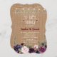 Unique, rustic design card featuring beautiful I DO BBQ typography (letter O replaced by a ring), hearts for initials, string lights, watercolour lavender navy blue floral bouquet, on an burlap background. Use Customise tool to add your info. See, also, my I DO BBQ Chalkboard/Barn and Gingham collection.