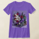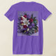 This t-shirt features a pretty red roses, white lilies and lavender bouquet on a lavender background image. The image is a digital photo picture that was created with generative art. The bouquet is on a purple t-shirt. The t-shirt is a Bella Canva Slim-Fit t-shirt.