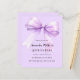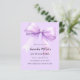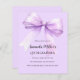 A soft lavender, purple coloured background, decorated with a large bow. Personalise and add a name and party details.