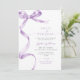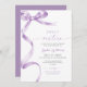 Lavender Bow Sweet 16 Birthday Invitation – Celebrate your milestone birthday in style with this elegant Sweet 16 invitation featuring a sweet purple bow design. Perfect for setting the tone for a chic and sophisticated event, this invitation showcases a soft lavender palette and a feminine, graceful aesthetic that is sure to impress your guests.